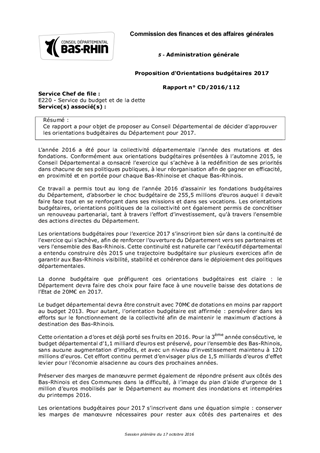Ce rapport a pour objet de proposer au Conseil Départemental de décider d'approuver les orientations budgétaires du Département pour 2017.