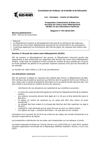 Proposition d'attribution d'Aides aux Accueils de Loisirs sans Hébergement (ALSH) et aux Allocations Vacances