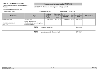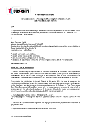 Le présent rapport a pour objet de proposer à la Commission Permanente de décider d’attribuer des subventions d’investissement pour la réalisation des travaux connexes (voirie agricole et forestière) aux aménagements fonciers agricoles et forestiers d’ALBE, DURNINGEN-KIENHEIM et OHLUNGEN.