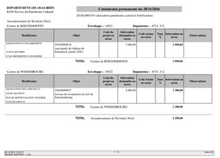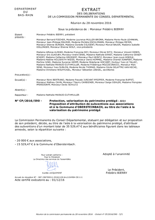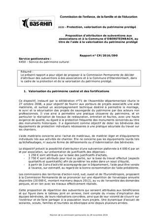 Le présent rapport a pour objet de proposer à la Commission Permanente de décider d’attribuer des subventions à des associations et à la Commune d'Obersteinbach, dans le cadre de la protection et de la valorisation du patrimoine protégé.