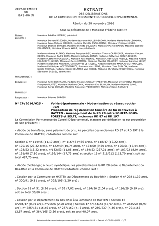 Proposition de régularisation foncière de fin de travaux à HATTEN - Aménagement de la RD 28 entre SOULTZ-SOUS-FORETS et SELTZ, anciennes RD 87 et RD 197