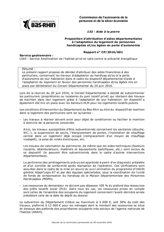 Le présent rapport propose de décider d'attribuer des aides financières à des particuliers, concernant les travaux d'adaptation au handicap et/ou à la perte d'autonomie de leur habitation dans le cadre du dispositif départemental d'aide à l'adaptation du logement en faveur des personnes handicapées et/ou âgées mis en place par délibération du Conseil Départemental du 20 juin 2016.