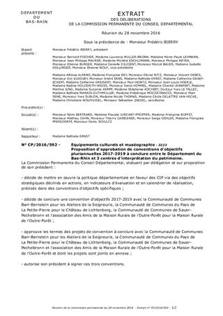 Proposition d'approbation de conventions d'objectifs pluriannuelles 2017-2019 à conclure entre le Département du Bas-Rhin et 3 centres d'interprétation du patrimoine.