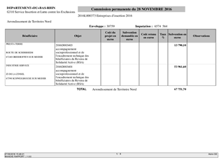 Le Département du Bas-Rhin attribue chaque année des aides financières aux structures en charge de l’insertion professionnelle des bénéficiaires du Revenu de Solidarité Active (RSA). Une avance financière représentant 70% de la subvention départementale attribuée en 2015 a été versée en janvier 2016. Le présent rapport a pour objet de proposer à la Commission Permanente de décider du montant des subventions 2016 et du versement des soldes et bonus prévus suite aux recrutements supplémentaires d’allocataires du RSA par les entreprises d’insertion.