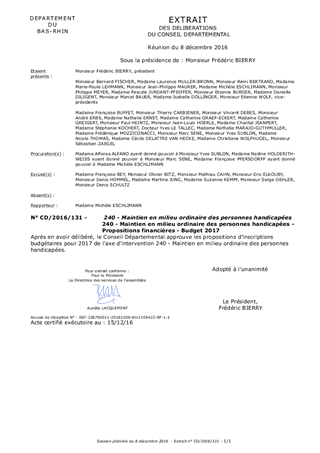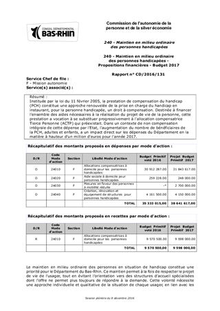 240 - Maintien en milieu ordinaire des personnes handicapées - Propositions financières - Budget 2017