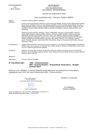 Le présent rapport a pour objet de proposer au Conseil Départemental de décider des inscriptions budgétaires pour 2017 concernant l'axe d'intervention 060 - Communication.