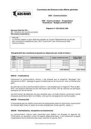 060 - Communication - Propositions financières - Budget primitif 2017