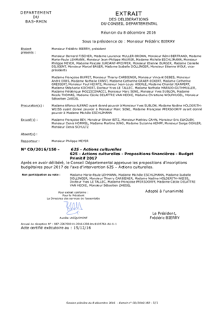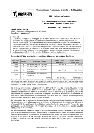 625 - Actions culturelles - Propositions financières - Budget Primitif 2017