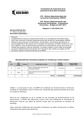 270- Maison Départementale des personnes handicapées - Propositions financières - Budget primitif 2017