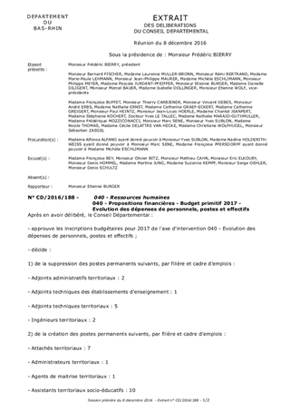 Dans un contexte de profondes mutations et contraintes, le présent rapport a pour objet de proposer au Conseil Départemental de décider de l'évolution des dépenses de personnels, postes et effectifs pour l'année 2017, dans la perspective d'équilibrer de manière responsable et rigoureuse le budget des Ressources Humaines tout en consolidant les perspectives de reconnaissance et d’évolution des agents de la collectivité.