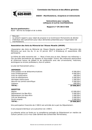 Le présent rapport a pour objet de proposer à la Commission Permanente de décider d’attribuer des subventions pour deux demandes présentées pour l’organisation de manifestations.
