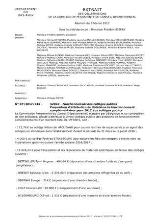 Proposition d'attribution de dotations de fonctionnement complémentaires pour 2017 aux collèges publics