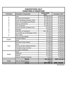 Propositions de projet de convention et d’attribution de subvention 2017 aux chantiers d'insertion