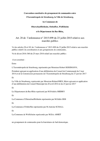 Fourniture de fioul pour les bâtiments du Département - Proposition de constitution d’un groupement de commandes avec l’Eurométropole de Strasbourg et certaines de ses Communes membres