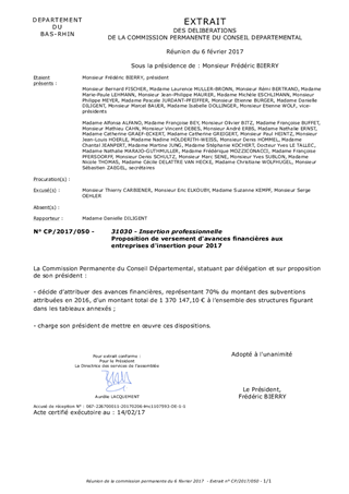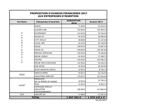 Proposition de versement d'avances financières aux entreprises d'insertion pour 2017