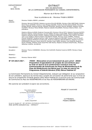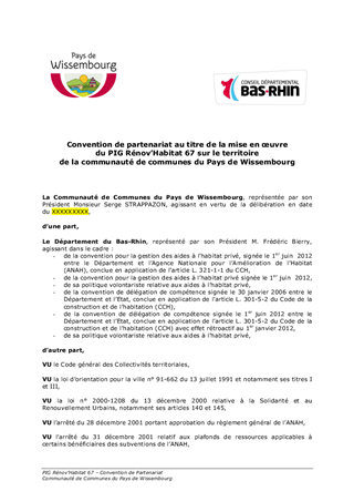 Proposition d'approbation de projets de conventions pour la mise en œuvre d'un partenariat à conclure avec les Communautés de Communes du Pays de Wissembourg et du Pays de Niederbronn-les-Bains pour la mise en oeuvre du Programme d'Intérêt Général (PIG) Rénov'Habitat 67