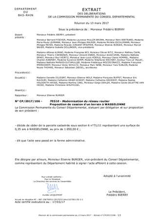 Proposition de cession d'un terrain à WASSELONNE