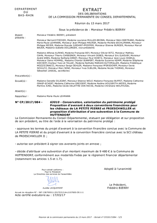 Proposition d’avenant à deux conventions financières pour les châteaux de LA PETITE PIERRE et FROESCHWILLER et proposition d'attribution d'une subvention à la Commune de HUTTENDORF