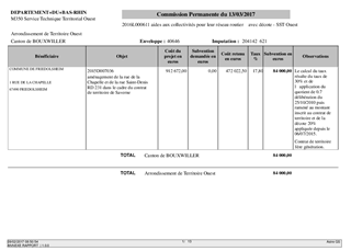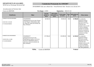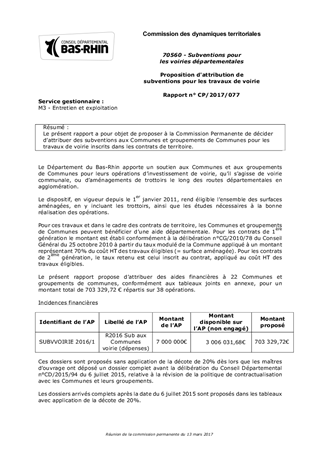 Le présent rapport a pour objet de proposer à la Commission Permanente de décider d’attribuer des subventions aux Communes et groupements de Communes pour les travaux de voirie inscrits dans les contrats de territoire.