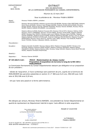 Proposition d'acquisition de terrains le long de la RD 220 à MARLENHEIM