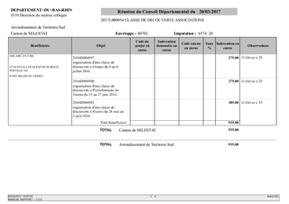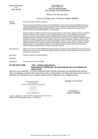 Proposition d'attribution de subventions pour les classes de découverte