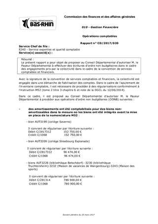 Le présent rapport a pour objet de proposer au Conseil Départemental d’autoriser M. le Payeur Départemental à effectuer des écritures d’ordre non budgétaires dans le cadre des engagements pris par la collectivité dans le cadre de la convention de services comptables et financiers.