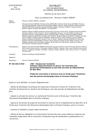 Politique départementale en faveur de l’insertion des personnes handicapées au sein des services du Département du Bas-Rhin Projet de convention à conclure avec le Fonds pour l'Insertion des Personnes Handicapées dans la Fonction Publique