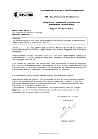 Le présent rapport a pour objet de compléter les délégations données à la Commission Permanente lors de la réunion du 2 avril 2015.