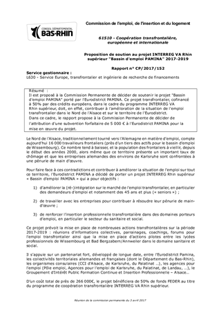 Proposition de soutien au projet INTERREG VA Rhin supérieur "Bassin d'emploi PAMINA" 2017-2019