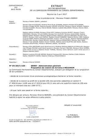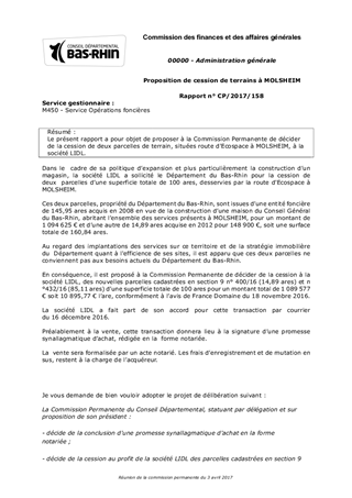 Le présent rapport a pour objet de proposer à la Commission Permanente de décider de la cession de deux parcelles de terrain, situées route d'Ecospace à MOLSHEIM, à la société LIDL.