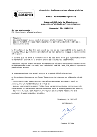 Le présent rapport a pour objet de proposer à la Commission Permanente de décider de l'attribution des indemnisations dues par le Département au titre de sa responsabilité civile