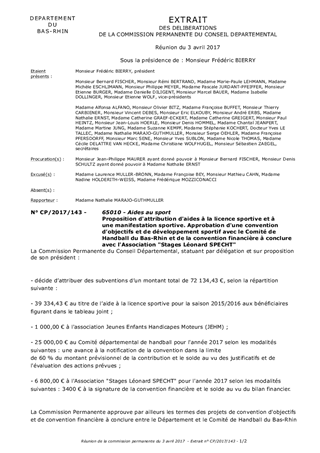 Proposition d'attribution d'aides à la licence sportive et à une manifestation sportive. Approbation d'une convention d’objectifs et de développement sportif avec le Comité de Handball du Bas-Rhin et de la convention financière à conclure avec l'Association "Stages Léonard SPECHT"