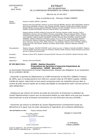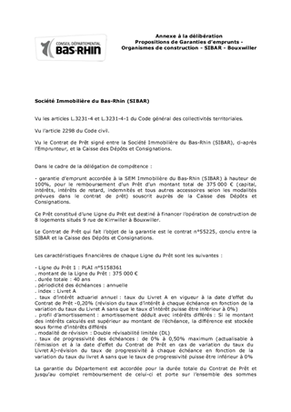 Le présent rapport a pour objet de proposer à la Commission Permanente de décider d’accorder une garantie d’emprunt pour un prêt souscrit par la Société Immobilière du Bas-Rhin (SIBAR) pour la construction de logements situés à Bouxwiller.