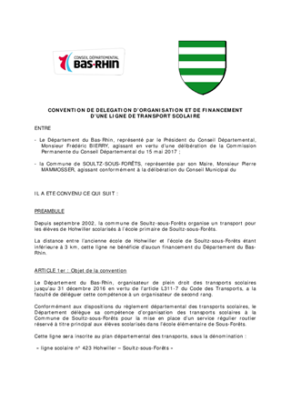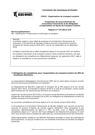 Le présent rapport a pour objet de proposer à la Commission Permanente de renouveler 3 conventions de transport scolaire couvrant uniquement le premier trimestre de l’année scolaire 2016-2017, soit du 1er septembre au 31 décembre 2016. La Région Grand Est est en effet compétente depuis le 1er janvier 2017 en matière de transport interurbain et de transport scolaire. Dans ce dernier domaine, elle agit sur délégation de compétence du Département jusqu’au 1er septembre 2017, date à laquelle la compétence lui sera pleinement transférée.