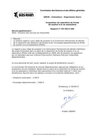 Le présent rapport a pour objet de proposer à la Commission Permanente de décider de la répartition des dotations cantonales et de l'enveloppe départementale du Fonds de soutien à la vie associative (FSVA).