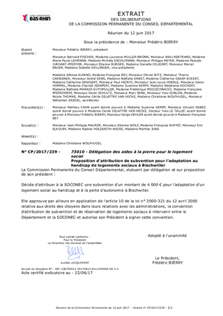 Proposition d'attribution de subvention pour l'adaptation au handicap de logements sociaux à Bischwiller