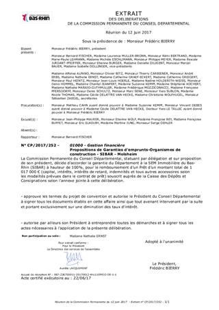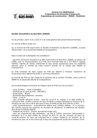 Propositions de Garanties d’emprunts-Organismes de construction - SIBAR - Molsheim