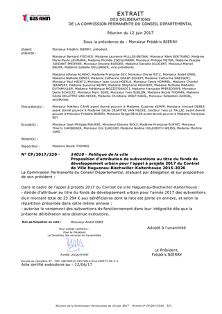 Proposition d'attribution de subventions au titre du fonds de développement urbain pour l'appel à projets 2017 du Contrat de Ville Haguenau-Bischwiller-Kaltenhouse 2015-2020