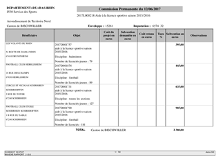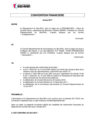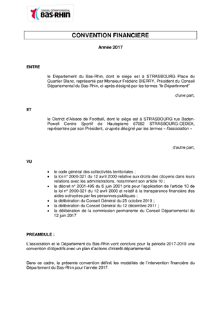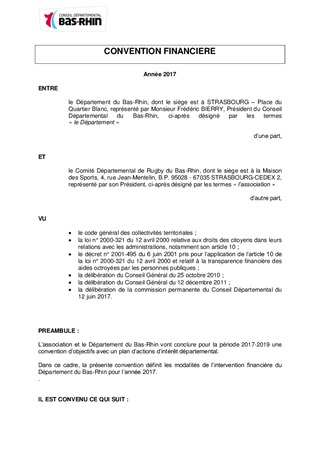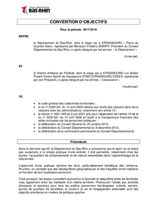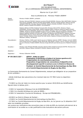 Le présent rapport a pour objet de proposer à la Commission Permanente de décider d'attribuer des aides à la licence sportive, à l'organisation de manifestations sportives, ainsi que d'approuver les termes de projets de conventions d’objectifs et de développement sportif à conclure avec le District d’Alsace de Football, le Comité Départemental de Gymnastique du Bas-Rhin et le Comité Départemental de Rugby du Bas-Rhin.