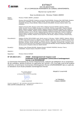 Institution d'une commission communale d'aménagement foncier à ALTECKENDORF