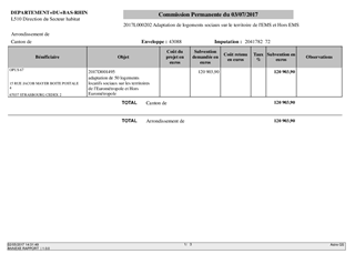 Le présent rapport a pour objet de proposer à la Commission Permanente de décider de l’attribution de subventions suite aux demandes d’aides financières présentées par OPUS 67 et HABITAT DE L’ILL dans le Bas-Rhin. - OPUS 67 : Adaptation de 19 logements sociaux sur le territoire de l’Eurométropole et 31 logements hors Eurométropole - HABITAT DE L’ILL : Adaptation de 11 logements sociaux sur le territoire de l’Eurométropole et 1 logement hors Eurométropole