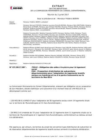 PDH - Proposition d’attribution de subventions départementales pour l’adaptation de logements locatifs sociaux au handicap et/ou à la perte d’autonomie sur le territoire du Bas-Rhin
