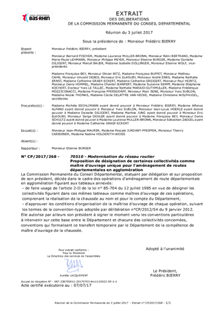 Proposition de désignation de certaines collectivités comme maître d'ouvrage unique pour l'aménagement de routes départementales en agglomération