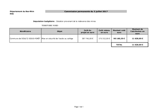 Le présent rapport a pour objet de proposer à la Commission Permanente de décider de la répartition des crédits provenant de la redevance des mines, assimilable à la dotation provenant des amendes de police. Ces crédits doivent être affectés au financement d'opérations d'amélioration des transports en commun et de la circulation routière, énumérées à l'article R 2334-12 du Code Général des Collectivités Territoriales (CGCT), réalisées par les collectivités regroupant moins de dix mille habitants.