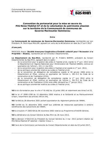 PDH-Proposition de reconduction de deux projets de conventions de partenariats à conclure respectivement avec la Communauté de communes de Saverne Marmoutier Sommerau et la Communauté de communes de l'Outre-Forêt pour la mise en œuvre du Programme d'intérêt général Rénov'Habitat 67.