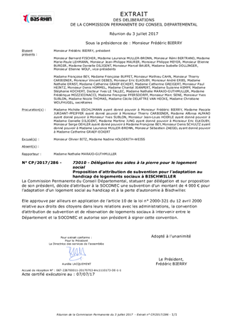 Proposition d'attribution de subvention pour l'adaptation au handicap de logements sociaux à BISCHWILLER