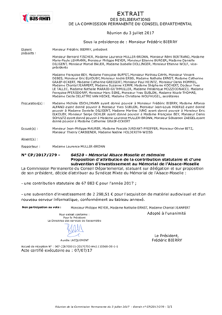 Proposition d'attribution de la contribution statutaire et d'une subvention d'investissement au Mémorial de l'Alsace-Moselle
