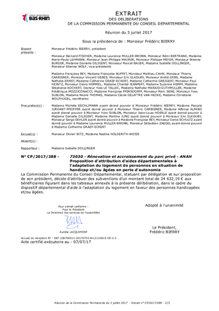Le présent rapport propose à la Commission Permanente de décider d'attribuer des aides financières suite à la demande de particuliers, concernant les travaux d'adaptation de leur habitation au handicap et/ou à la perte d'autonomie dans le cadre du dispositif départemental d'aide à l'adaptation du logement en faveur des personnes en situation de handicap et/ou âgées mis en place par délibération du Conseil Départemental du 20 juin 2016.