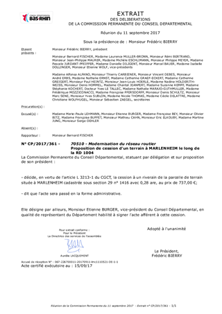 Le présent rapport a pour objet de proposer à la Commission Permanente de décider la cession d'une parcelle de terrain située sur la commune de MARLENHEIM le long de la RD 1004.