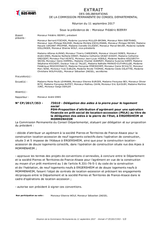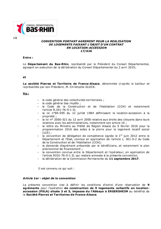 Le présent rapport propose à la Commission Permanente de décider d’attribuer deux agréments à la société Pierres et Territoires de France-Alsace pour des prêts sociaux de location-accession (PSLA) concernant neuf logements collectifs situés à ERGERSHEIM et 12 logements collectifs situés à MOMMENHEIM.